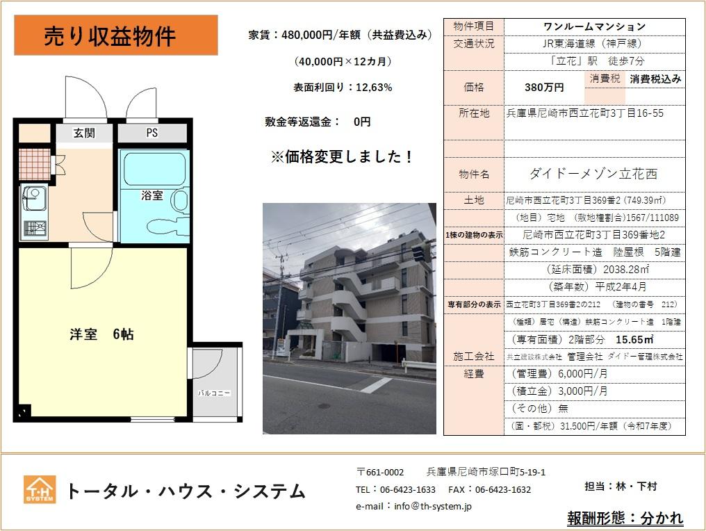 | 所在地 | 尼崎市西立花町3丁目 ダイドーメゾン立花西212 | ||