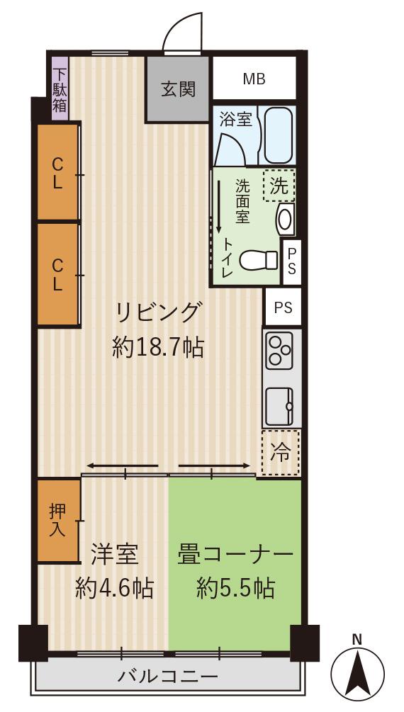 | 間取り | 1LDK | 間取り内訳 | LDK18.7畳 洋10.1畳 |